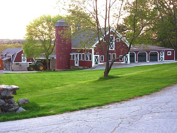 19.36 acres in Topsfield with impressive equine amenities including numerous barns, fenced paddocks, miles of trails, a farmhouse, workshops and equipment bays. A unique operating farm and equestrian property with a gracious1780 farmhouse has three bedrooms and two full baths, a fireplaced living room, dining room, and kitchen with pantry. The 2-story, lower barn has 8 stalls, 2nd floor hay loft with elevator, heated tack room, bath and washer dryer. The upper barn has a woodshop, kitchen and studio with bath; there is also a 4-stall pony barn. In addition, there is a large office with equipment and garage bays on either side, and a carriage shed. Sale is subject to the sale of the main house and division approval by the town. Additional 88.5 acres available with frontage on the Ipswich River.