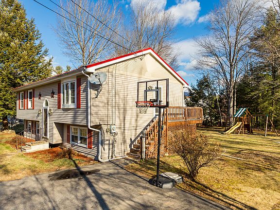 This well cared for home offers a flexible floor plan with a feeling of expansiveness in your open concept living area. The dining area opens up onto a large deck overlooking a nice back yard and fruit trees. This house offers three to four bedrooms with additional living space as well as a large family room on the lower level. Situated in close proximity to Spaulding Turnpike for ease in commute and a wonderful neighborhood setting for walks and bike riding yet a feeling of privacy as you are in your yard. Numerous amenities include metal roof, newer boil less boiler as well as a heat pump with newer flooring . First showings will be on Wednesday Sept 29th, from 4:30 pm-6:30pm.