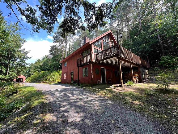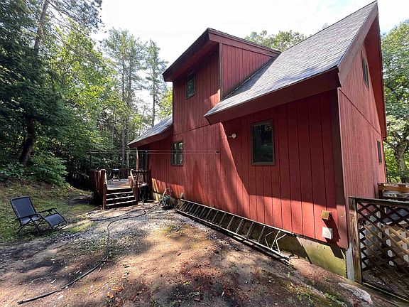 This well cared for 3 bedroom 3 bath home sits on 5.6 acres within walking distance to Lake Massasecum for swimming or boating. The newly renovated lower level has it's own kitchen, living rm, bedroom, full bath and laundry, ideal for in-law or airbnb. On the second floor there is a spacious living room with brick wood burning fireplace, hardwood floors, fully applianced kitchen, two bedrooms and two additional full bathrooms plus laundry room. Lots of glass facing south and sliders to a wrap-around deck complete with a retired Pat's Peak chairlift chair. This property offers easy access to ski areas, boating, swimming, biking, hiking and snowmobiling as will as being handy to I-89.