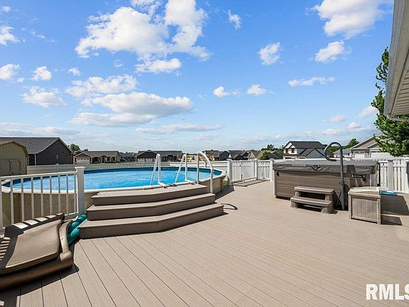 Welcome to your ranch paradise oasis! This exquisite home boasts 4 bedrooms (with a potential 5th), 3 baths, an open-concept design that epitomizes luxury living. Step outside to your 20x72 patio, a true entertainer's dream. Imagine cooking in your outdoor kitchen, enjoying culinary adventures under the open sky. As the evening cools, gather around the gas firepit patio for cozy conversations. The covered pergola, with its elegant stamped concrete flooring, provides a shaded space for relaxed gatherings, while the pool deck, complete with a salt water jetted tub and above-ground pool. A 14x10 shed offers storage for outdoor essentials. The over sized, heated four-car garage doubles as a workshop, complemented by an extra-wide driveway and additional parking slab for all your needs.Step inside, be greeted by the expansive great room that seamlessly flows into the kitchen and dining area. The main floor also includes a convenient laundry room, two bedrooms that share a bath, and a primary bedroom with a private bath and direct access to the pool deck. Heading downstairs, you’ll discover a versatile space perfect for relaxation and entertainment. This level includes a pool table room, a family room with a sink, a full bath, one bedroom, a 5th non-conforming bedroom, and abundant storage space. This home is designed for both comfort and style, offering endless possibilities for indoor and outdoor living. Don’t miss the chance to make this paradise your own.