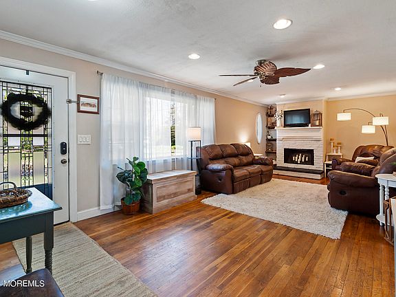 Beautifully updated 2/3 Bedroom 2 FULL BATH Ranch on HALF ACRE of property! Warm, Inviting Living Room with WOODBURNING FIREPLACE & BUILT IN SHELVING! Large Newer Kitchen with MAPLE CABINETS, STAINLESS STEEL APPLIANCES, DINETTE, Laminate Flooring & Sliders to Deck. HARDWOOD FLOORS from the Living Room throughout Bedrooms! Master Bedroom was combined with 3rd Bedroom. (Buyer can open linen closet to divide back to 3rd Bedroom if they wish.) FINISHED BASEMENT with 3 Rooms, FULL BATH, Plus Large Storage Room! Sit and Relax on your Deck overlooking LARGE YARD! Back Roof Replaced in 2017 & 2022 in Front! PUBLIC WATER & NEWER SEPTIC! CLOSE TO EVERYTHING! CALL TODAY FOR A PRIVATE SHOWING!