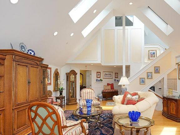SPECTACULAR CONTEMPORARY and PRIVATE END UNIT! OPEN DESIGN TOWNHOME. Award winning Developer! This exquisite resale will excite the most discriminating buyer. Stonewalls, oversized stone drive with double access points-Separate 4-Season Porch. Mahogany and Granite front entry! Skylites, Vaulted and Tray like ceilings graced by abundant architecturally designed glass panels allows for maximum light and beauty. Enjoy Hardwoods, Expansive Granite French Country Kitchen with Elongated Cabinetry, Center Isle, Breakfast bar for 4, Stainless Refrigerator, sink with Hot Water spout / soap, Trash compactor, Under Cabinet lighting with skirting, Roll-Out Drawers and more! Granite Hearth-Gas Fireplaced Great Room leading to 4-Season Porch! FIRST FLoor KING Size Master bedroom, Ceiling reading lights, California style walk-In closet, Jacuzzi Tub, Elongated Double Vanity and Glass Shower! 1st Floor Laundry. 3rd Bedroom currently a delightful office. Full Basement with Painted walls.