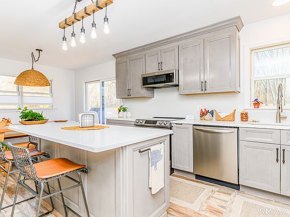 Just minutes from the heart of Mystic, this meticulously maintained Raised Ranch on .92 acres offers an exceptional location with everything at your fingertips. Enjoy close proximity to Olde Mistick Village, the Mystic Aquarium, and Hartford HealthCare, with I-95 just moments away for easy access to Rhode Island beaches and Connecticut's shoreline destinations. Grocery stores, dining, fitness, and entertainment are all nearby, yet the home is tucked into a peaceful, quiet neighborhood setting, offering the best of convenience and coastal living. The sellers have invested significantly in the systems and finishes that matter most. The home features a new roof with a 50-year warranty, all new Marvin windows throughout, freshly renovated bathrooms, and a new garage door, among other improvements. The new kitchen is a highlight, featuring modern solid wood cabinetry, stainless steel appliances, and a large island with seating making it ideal for everyday living and entertaining. Bright, functional living spaces flow throughout, with a partially finished basement offering flexibility for a home office, workout area, or media room. This is a rare combination of quality updates and thoughtful care. Being sold as-is, but truly move-in ready. Years of careful ownership mean no immediate updates needed, just unpack and start living. Whether you're seeking a primary residence, weekend retreat, or smart investment, this home delivers. Don't wait-schedule your showing today! Being sold As-Is.
