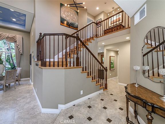 Absolutely stunning single family home located in a quiet cul-de-sac location, nestled in the sought after hillside of Foothill Ranch. This amazing home boasts 3 bedrooms, 2.5 baths, and a rare side by side 3 car garage. The home welcomes you with vaulted ceiling and is highly upgraded with Italian tile flooring plus inlay on the first floor and wood flooring on the second, custom drapery, designer lighting, completely remodeled kitchen & baths... Gourmet kitchen boasts stone counters & backsplash, stainless steel appliances, wine fridge, and beautiful cabinetry with custom hardware. Cozy family room with stone fireplace, provides easy & convenient access to both the kitchen and a lush & gorgeous backyard with large patio cover. Primary suite upstairs has dual vanities, enlarged dream shower and walk-in closet. Two additional bedrooms and a secondary bath are also on the second level. Enjoy the convenience of access to nearby schools, shopping & dinning, Toll-road access, as well as many recreational options such as Red Rock Canyon park trail.