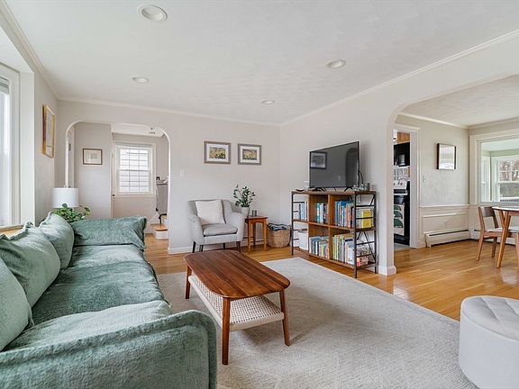 Come check out this well-maintained home with a large, 9,000 sq ft backyard on a beautiful street a half mile from Roslindale Village! The home features hardwood floors throughout, a lovely bay window into a sunny living room, a wood burning fireplace, and a sunroom that opens to a spacious deck and patio. The home has a newer roof and siding, recently installed mini-splits and AC, and an updated kitchen and upstairs bathroom. Other features of the home include a partially finished room in the basement perfect for a playroom or home gym, an uncovered parking space, and a shed and raised beds in the backyard. This home features some of the most generous outdoor space in the local area while still offering the best of city living with its friendly neighborhood and proximity to Roslindale Village, including its farmer's market, shops, restaurants, and commuter rail.