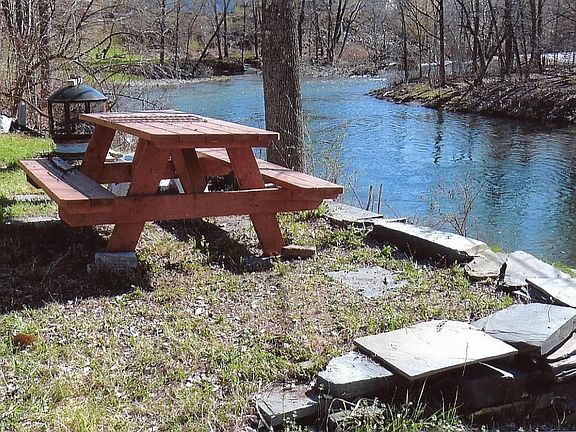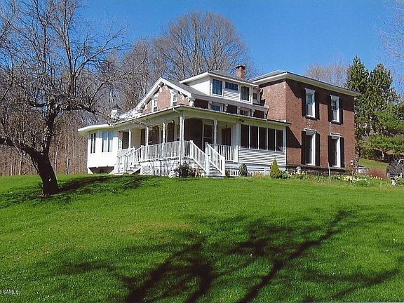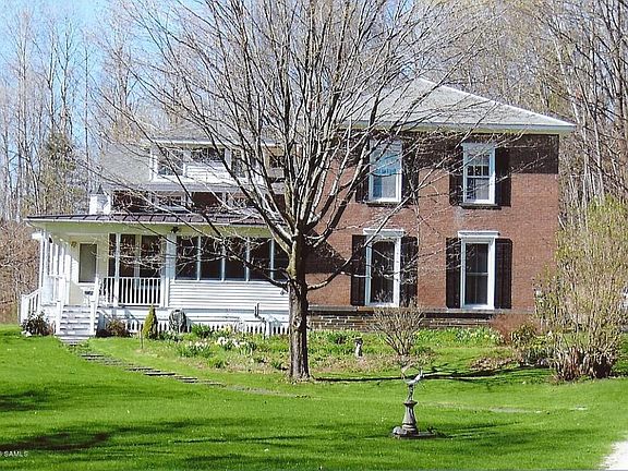Gorgeous 5.97 Surveyed Acres. Approx. 590' on the Mettowee River. Huge waterfall, picnic area on river bank. Trout fishing. Circa 1832 brick home, with west wing addition circa 1990. House is beautiful!! 25'x60'+/- veranda. Horse/machine/hay barn. Run in shed, chicken house. Countless perennials. Red Brook meanders property ending in a waterfall @ Mettowee River.