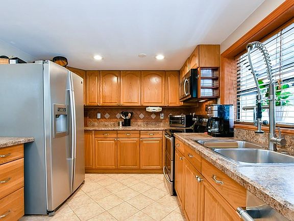 Meticulously cared for raised-ranch style home in fantastic Stoney Brook location where you have the convenience of city living surrounded by acres of conservation. This home sits up high above the street on a 1/3 acre lot with professionally landscaped grounds and solar lighting on walkways. Foyer entry with coat closet steps up into open living room. Updated cabinet packed oak kitchen with floating island and stainless steel appliances opens to dining area with slider to deck and back yard. The back yard has a newer deck (2018) and stairs and patio space great for entertaining. Tremendous privacy here. All newer windows with the exception of 1 in dining room. Hardwood flooring in living area of 1st level and 3 beds and full bath up. Master bed in walk-out lower level along with 3/4 bath, separate laundry and another storage/closet space and tv room. Off street parking was once a car port. Large storage shed in yard. 1st showings this Sunday Sept 22nd from 11:30 -1pm. Don't miss it!