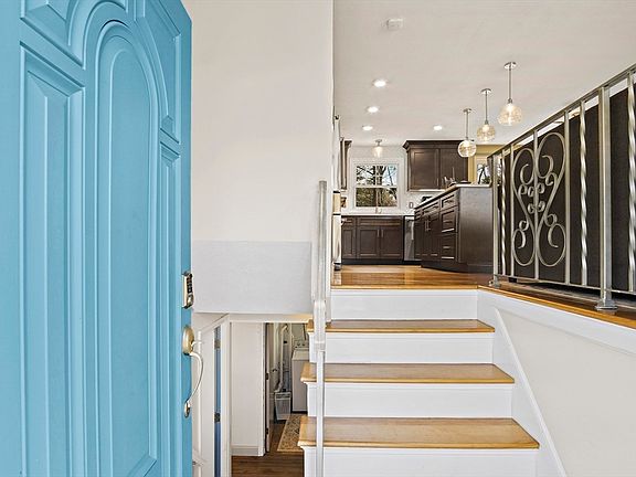 The last house on a West Side dead end street, this nicely updated split level home offers space and beautiful amenities inside and out. A brand new stone walkway leads to a welcoming front entry. Hardwood flooring leads up to the main level where you'll find a wide open living area which is highlighted by a fabulous kitchen with quartz countertops, stainless appliances and gas cooking. A large island sits centrally between the dining area which has sliders to a back deck and the living room which features a lovely brick fireplace. This level also includes an updated full bath with radiant heat and double vanity as well as 3 bedrooms with wood flooring. The lower level is home to a large family room with fireplace, a home office, laundry room, 1/2 bath and the attached garage. Walk out from the family room to a large yard with built in firepit/patio and nice views of the abutting conservation land. Added features include ductless mini splits, new roof, 2017furnace and 200amp service.