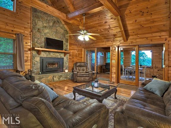 Welcome to Sunrise Vista! Close to the heart of Blue Ridge, this immaculately maintained cabin is turn-key and ready to enjoy! With year-round, panoramic views of a daily sunrise over the mountains, this home features an open floor plan with 3 bedrooms, 3 baths, 2 car garage, added bonus room with windows across the entire back, den/theater room that could be your man cave or she-shed, and a game room over the garage! Outdoor space includes two balconies with seating to view nature at its best, a ground floor terrace, a pet-friendly, fenced-in area in back, along with a spacious, walkable backyard! With all paved access and a wide, circular driveway, easily make your way over to see if this could be your place to escape or a full-time retreat! *FURNISHINGS INCLUDED IN PURCHASE PRICE*