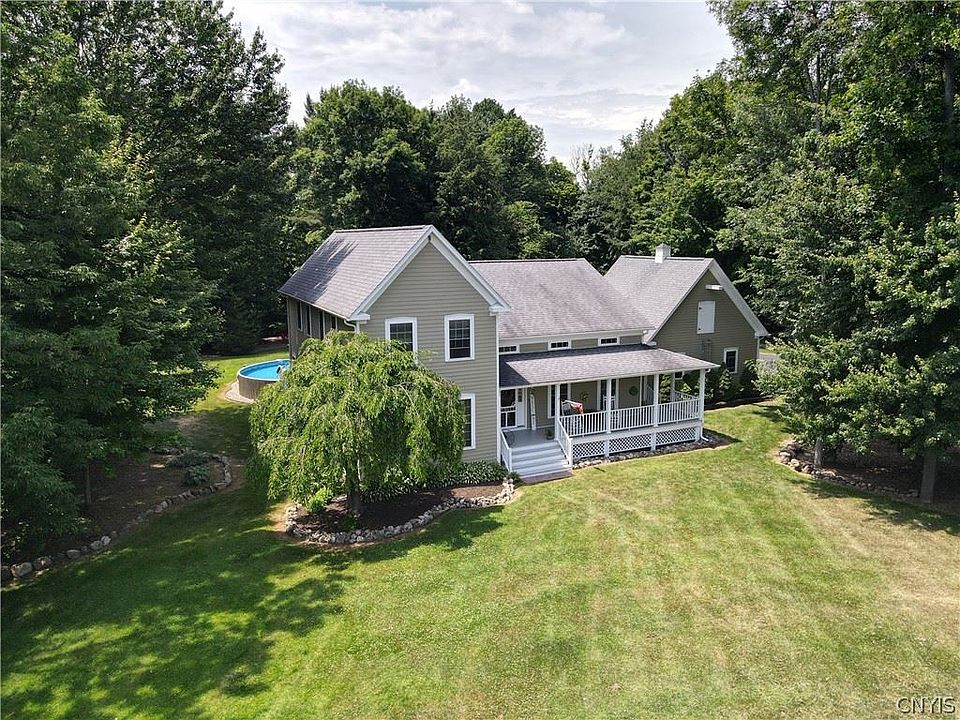 Step inside and prepare to be WOWED by this one-of-a-kind Architecturally designed, Farmhouse-style, custom home built w/quality craftsmanship and so much architectural detail. Ideally sited on 2.99 acres w/399' rd frontage & stunning landscaping in a secluded setting. Notice beauty at every turn--soaring ceilings, tall windows, natural light flowing; Hardwoods throughout-Red Oak, Hickory & Blonde Maple! Desirable flr plan incl:2-story Great Room leads to Patio, Deck, Pool &privacy. 3-Season Sunrm, 1st floor Master Suite, 3.5 Ba,; Chef's Kitchen, Birch cabinets w/pantry pull-outs, Quartz countertops, Granite island, 36" Gas Cooktop, double wall ovens; charming Diningrm w/tall ceilings & transom windows; French doors to Livingrm or Office; 2nd fl incl. Jack & Jill Bedrms, Full Bath & Study Nook; Lower Level w/full size windows, tastefully finished into Family/Rec Room, Bedrm & Full Ba; Utility rm w/workshop & loads of storage. Experience vacation every day, with deeded water rights & access to Silver Lake, exclusive to Silver Lake Estates properties, for swimming, boating & fishing. SHOWINGS BEGIN WED,JUNE 29TH; DELAYED NEGOTIATIONS-HIGHEST/BEST OFFERS BY 5PM,SUNDAY, JULY 3RD