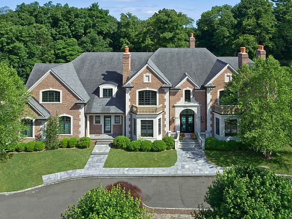 Majestic brick manor home custom built on 2.78 parklike acres backing onto Greenwich Country Club. The traditional brick exterior belies the sleek and modern interior with marble and wood flooring. Four levels of living space with high ceilings, oversized windows, custom Chesney fireplace mantels, and smart house technology with a state-of-the-art security system as well as Lutron and Crestron systems. Enter an impressive double foyer leading to a fabulous floor for both causal and formal entertaining. Two story great room with awe inspiring 1,250 gallon salt water aquarium adjacent to a stylish and functional Smallbone. Expansive veranda with fountain and outdoor fireplace. Large 57 x 20 pool surrounded by verdant lawn. Luxurious master suite, 5 additional ensuite bedrooms, custom office. Finished lower level with gym and wine cellar and theater & multi-sport / golf simulator room. In addition to the over 9,000 square feet, the house has a fully built-out basement and 4 door garage.