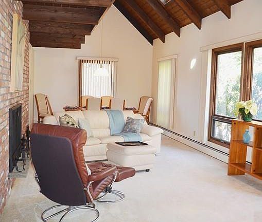 - Liv Dscrp: Flooring - Wall To Wall Carpet, Cable Hookup, Fireplace, Main Level, Ceiling - Cathedral, Skylight, Ceiling - Beamed, Window(s) - Picture, Wood / Coal / Pellet Stove