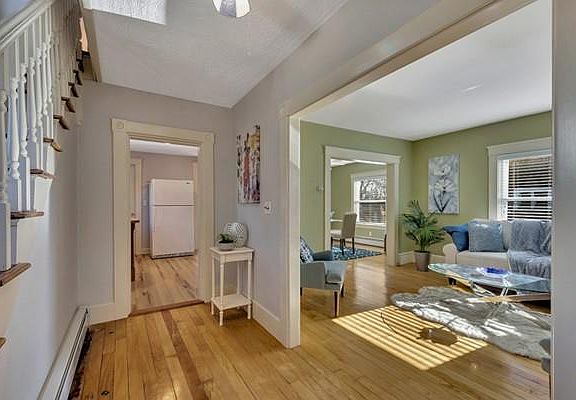 Fun Fact - Mark Whalberg was filmed on the front porch & backyard of 29 Dyer for the movie, Patriots Day! In addition to it's Hollywood celebrity status, this 2BR/1.5BA side-entrance colonial is super cute, bright, well maintained & ideally located for quick access to shops, restaurants & commuting options. Lovely hardwood floors & a built-in china cabinet add charm & character to the home. The main level has a half BA & flows from a cozy foyer to the bright LR, DR & kitchen. Bonus, you will have tons of space for seasonal entertainment & potential for future expansion with the unheated mudroom & large sunroom off the kitchen. Upstairs, 2BRs & a full BA complete the living space. Storage is not an issue with plenty of closets & a full height basement. Many big ticket items have already been taken care of e.g. boiler (2014), roof (2013), central air (2012) & windows (2011). The private, fenced backyard with a patio is an ideal spot for spending lazy summer Sundays & BBQs with friends.