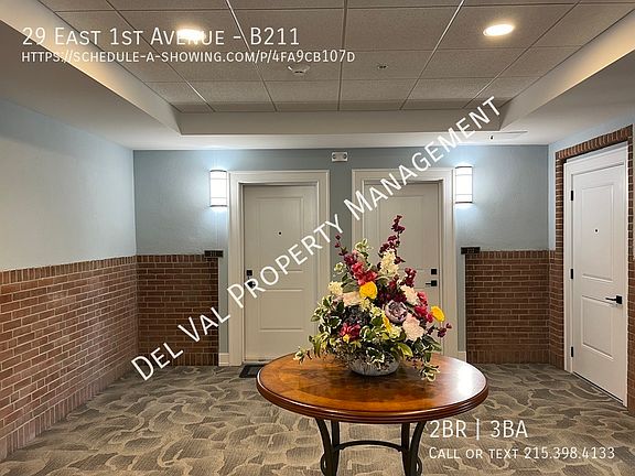 About this Property: - Luxury 2-Bedroom, 2.5 Bath situated in unique Stone School Community now available 29 East 1st Ave, Unit B211, Trappe, PA - $2,290 per month, plus all utilities. Water, sewer and trash included. - 2 Bedrooms - 2.5 Bathrooms - 1,307 Sq. ft. - Amenities include Fitness Center, dog park, outdoor community space with fire pit, community party room, walking trail, two reserved parking spaces, and a separate storage unit - One of the those parking spaces is covered - Unit features an open concept living, dining and kitchen area - High ceilings and large windows allow for abundant natural light - Remote control blinds - Hardwood floors - Perkiomen Valley School District - Recessed lighting - Two large bedrooms with master baths that include tile walk-in master showers - Walk-in closet in master bedroom, both bedrooms have custom closet systems - Island kitchen with 42 inch cabinets, stainless steel appliances, quartz countertops with tile back splash and built-in microwave - Laundry room with washer and dryer - Pets allowed at owner's discretion: $40 - $60 monthly pet rent, plus refundable $300 pet deposit - No Smoking permitted - Convenient to Ursinus College, Central Perkiomen Valley Park, King of Prussia, Valley Forge, restaurants, shopping, walking trails, round the corner from Providence Town Center, Rt. 422 and Philadelphia Premium Outlets - Offering a one year lease or longer, if needed - Shown by appointment only Application Process - There is $50.00 non-refundable application fee and a one-time lease administration fee of $25.00. Applicants must put up three months' rent to move in (first months' rent and two (2) months' security deposit). Del Val will review your income(s), credit, rental and employment history and other information in order to verify that you qualify for the property. Unless otherwise noted in the ad, regretfully our policy is that pets are not permitted in this rental property. To apply online please go to Del Val Application Page. Our Resident Benefits Program is included with all Del Val Leases and includes many benefits. For qualified residents this allows you to forego your two (2) months of security deposits. If you elected to participate in our ZeroDeposit Program there are additional fees. For more details please go to ZeroDeposit Program. Additional benefits include Online Rent Payment, Concierge Utility Service, One-time Late Fee Forgiveness, One-time Non-sufficient Funds Forgiveness and many more. The cost for the Resident Benefit Program is $15.00 and is included in your monthly rent. Other Del Val Properties: To see our other properties for rent please go to Philadelphia Homes For Rent Property listed by: Del Val Realty & Property Management 49 E. Lancaster Avenue, Suite 300 Malvern, PA 19355 Philadelphia Property Management All information regardless of source is not guaranteed and should be independently verified. #PropertiesFor Rent #RealEstate #HomeForRent #ApartmentForRent #ProperiesForLease #HouseRentals #Tenants #PropertyManagement #RentPrices #HouseForRent #Rentals #PhillyApartments #PhillyLiving #ApartmentRent
