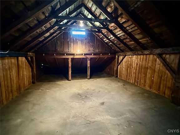 So much to offer . . . 3 bedrooms, 1 1/2 baths, HUGE family room with gas stove, fully applianced kitchen, dining room, living room, den with fireplace and a library! In addition, you'll love the barn style garage that boasts a 2nd story and a 50 AMP sub panel, the screened in porch and a wonderful yard. House is wired for a generator. Portable Generac generator stays upon sale. Public sewers are being run to the entire Village of Oneida Castle with hook-up to the sewer system being required within 2 years.