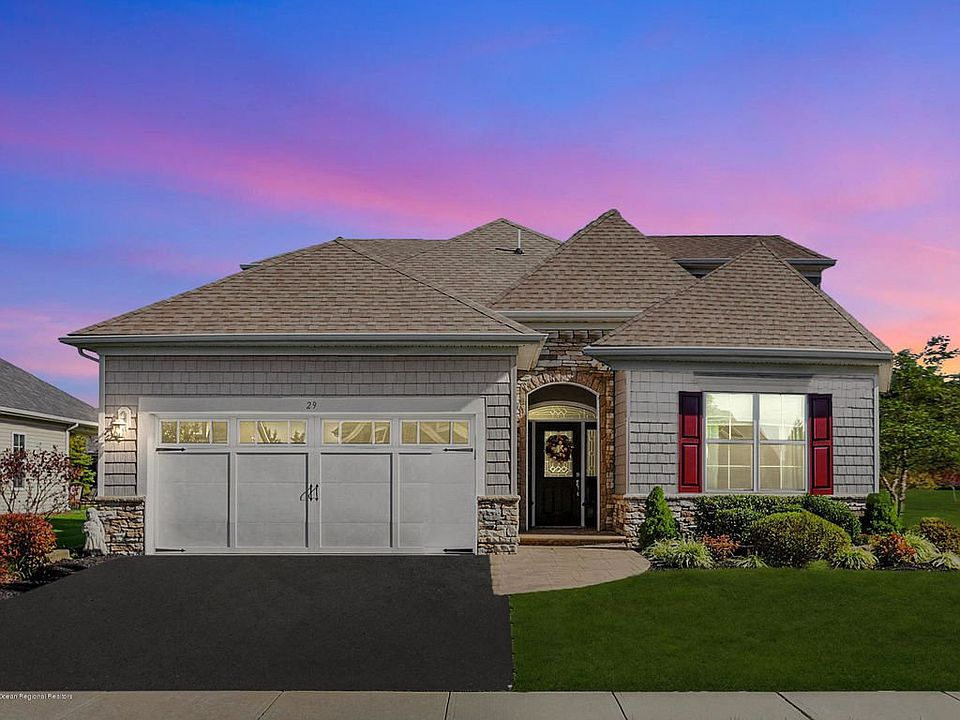 Welcome to Equestra, Monmouth's luxury adult community. This 2680 sf Lassiter loft model has cedar shakes and stone siding adding excellent curb appeal on an oversized lot. Walking into a welcoming foyer with 10 ft ceilings and hardwood floors is the entrance for a elegant 4 bedrooms and 3 bathrooms with many upgrades. Featuring a formal dining room with tray ceilings, chefs kitchen with granite counters tops and a larger center island, eat in dining area with views and sliders to a spacious patio and backyard, open family room offers gas fireplace and coffered ceilings. In a edition to the guest bedroom, laundry, full bath, and bonus room, that's great for an office on the main floor is the Master Bedroom. This Master offers a sitting room with access to backyard, walk in closet and full
