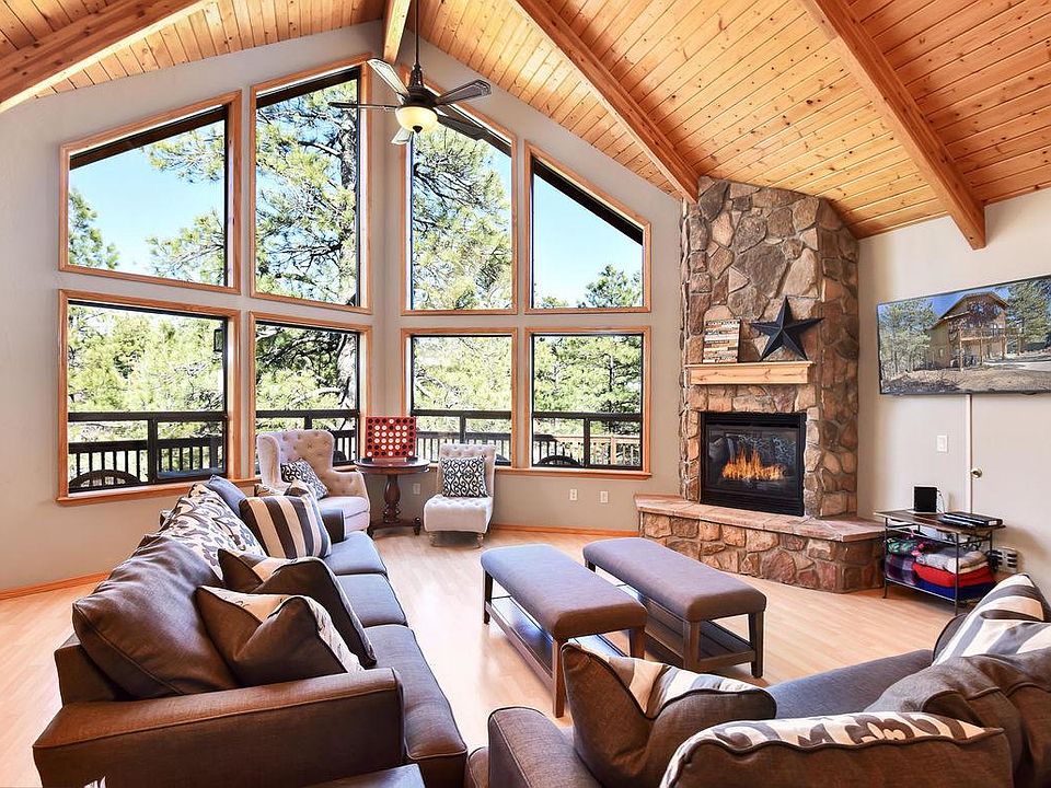 Munds Park Dream Home with A/C! Floor to ceiling windows and 2 story open living room, looking out to the deck and private canyon. Open floorplan, master on the main level, 2 bedrooms upstairs and a second family room and 4th bedroom downstairs. Currently used as an shortterm vacation rental. Granite counters, and all appliances included. At the current price, home comes complete with furniture, bedding and kitchen items, excluding a few personal items still in home. Home is air conditioned throughout. Also additional parking on the upper level of driveway. Owner states Oak Dr is one of the first to be plowed in the winter. Offers will be accepted until 5 pm, Sunday April 5th, 2020.