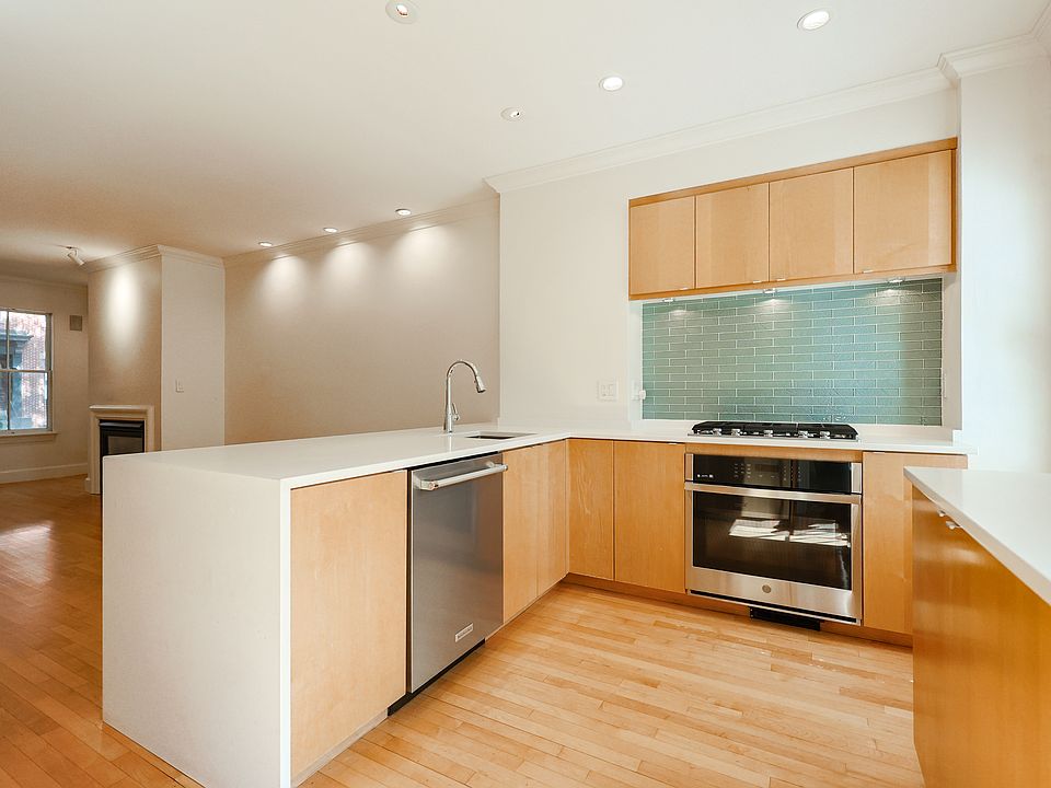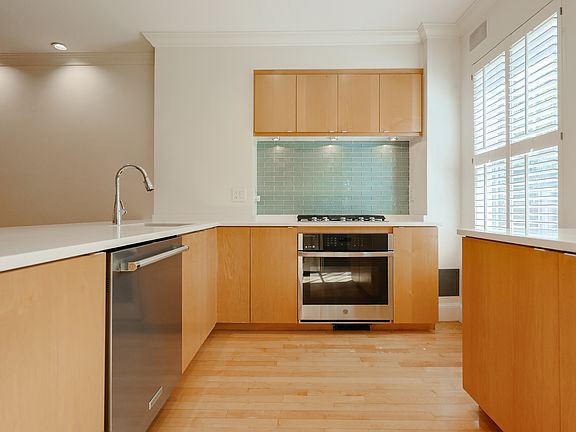 The recently updated kitchen features white quartz countertops, stainless steel appliances, and generous counter space and cabinetry. The private deck extends off of the kitchen which is perfect for entertaining. The unit's thoughtful layout provides separation between living areas and bedrooms, giving you room to work, relax, and recharge.