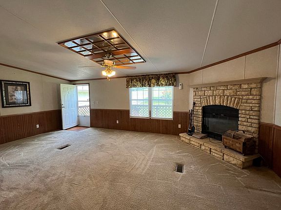 3BR 2BA Doublewide on quiet city streetWell maintained home with spacious floor plan. Large living room has an electric fireplace insert in one corner. Formal Dining plus snack bar and breakfast nook in kitchen. Kitchen includes Electric range, dishwasher, microwave and SxS refrigerator with water and ice dispenser in door. Washer and Dryer are also included. Master suite his/her closets and sinks in bath, separate jet tub and walk-in shower. Split floor plan has 2 guest bedrooms and full bath to complete interior. Central Heat and AC.Level to gently sloped lot is mostly open with a few trees the yard is park-like with mature shrubs and perennials. Detached Garage is 14x22 with a workbench on one end. 8x12 patio plus two 8x12 storage sheds near the back alley access.