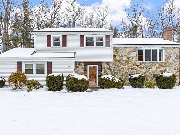 Welcome home to this inviting stone-front Multi-Level in North Framingham. This home offers both comfortable living space as well as great flow for entertaining family and friends.Step inside to a tiled entry which leads to a spacious bright living room with fireplace and bay window. The living room opens to a formal dining room. The white cabinet kitchen has a new induction stove, two wall ovens, ss appliances, granite counters, breakfast area and an abundance of cabinets. A dramatic three season sun room looks out onto a spacious yard. The middle level has a wonderful family room that offers a relaxing area for guests with a gas stove for cozy evenings and a convenient updated full bath. The lower level is semi-finished with an office, laundry and workout space as well as loads of storage space. The upper level has three bedrooms and a full bathroom. There is a one car garage with gardening or workshop area. The expansive 1/2 acre lot has a fenced yard and storage shed. New Heat/AC!