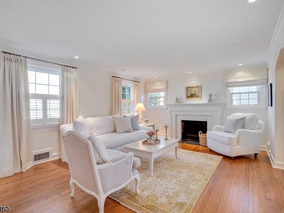 This lovely home is situated in a peaceful setting on one of the most beloved streets in Chatham and is close to all schools, train, and downtown. Large formal living room w wood-burning fireplace, formal elegant dining room, an all-white kitchen open to family room with vaulted ceiling, bright sunny windows and views of level backyard. Kitchen has beautiful new marble countertops, sink, Rohl faucet, custom solid maple floating shelves, wall sconces and tile backsplash. Charming laundry room and powder room off the family room with access to backyard and patio. Three large bedrooms including primary bedroom with primary bath and two large closets including a walk-in. Primary bathroom with new marble countertop and custom frameless shower doors. The ground floor finished room with bright windows can be used as a home-office, playroom or den and has a full walkout through attached garage. Oversized one-car garage with new epoxy floor finishing. Beautiful new brick front entryway steps and front door. New roof, W H, halogen recessed lighting, custom wood blinds and plantation shutters throughout and professionally landscaped.