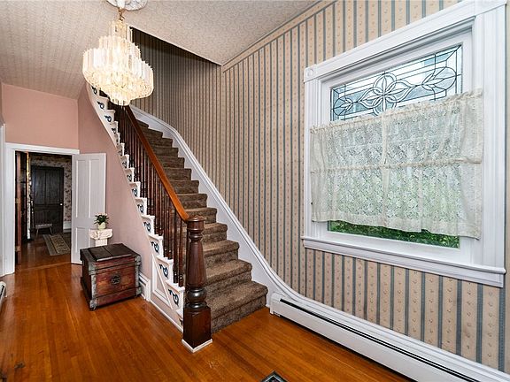 H048506 Charming Victorian home situated on one of Batavia's oldest streets offers a spacious kitchen featuring a butcher block island, solid surface counter tops, a gas range, a refrigerator, and a new dishwasher. The first floor includes a walk-in pantry/laundry room, a formal dining room, a formal living room with a gas fireplace, a family room, and a convenient half bath. The second floor boasts 3 to 4 large bedrooms along with a full bathroom featuring a jetted tub and double sinks. Additionally, the property includes a two-car garage, a shed, and a fenced-in backyard. Sellers request 24 hours notice to show.