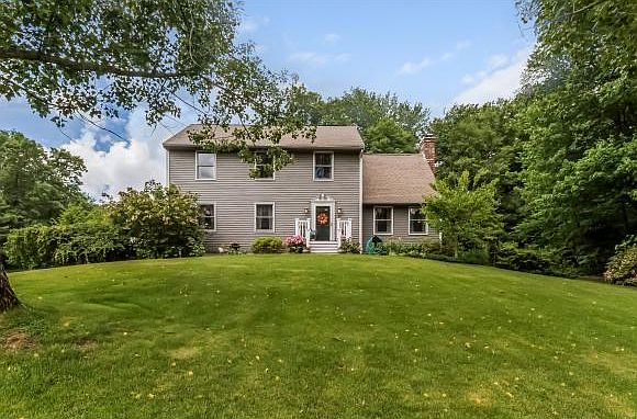 Youâll fall in love the second you drive up to this impressively maintained âWilliamsburg at Merrimackâ Colonial. This gorgeously landscaped corner lot is a virtual acre of privacy and convenience. The 10 foot kitchen island promises to lead to many conversations with family & friends. The beautiful oak floors with inlaid walnut in the kitchen and inlaid cherry in the family room add a touch of class that shows the pride of ownership. Brand New carpeting throughout will keep your toes warm during the cold winter months while you listen to the crackle of the fire in the wood burning stove. The large private patio offers a relaxing hot tub for those special summer nights. The 4+ bedrooms and 3 baths will meet the needs of any demanding family! With a 1st floor laundry and finished basement, the floor plan offers great flexibility. Convenient to shopping & schools. This highly sought after neighborhood with public water and sewer will not disappoint! This one won't last long!