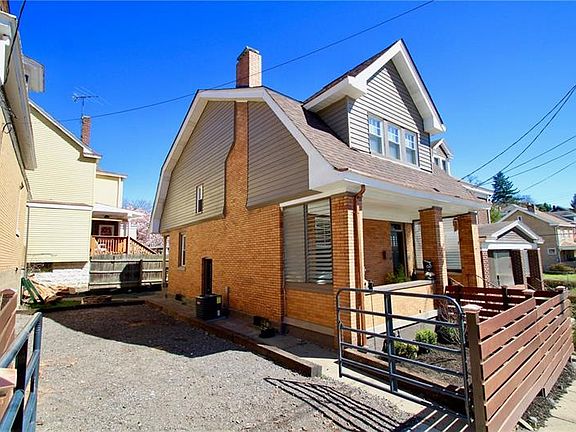 This charming craftsman bungalow has been renovated inside and out with handsome finishes and upgrades. Warm wood, with black and copper accents compliment the exterior brick and are carried through into the interior with a copper sputnik chandelier and tropical hardwood floors. The kitchen has been updated with ceramic tile, stainless steel appliances and a live edge wood bar. The bathroom boasts a new vanity, slate effect tile and multiple shower heads for a spa like experience. The second floor and stairs have brand new wall to wall carpeting and the entire interior has been repainted. Off street parking for 2 vehicles is a key feature to this property as well as a fenced in yard. A new roof was installed in 2018 to top of this renovation as well! Close to dining, shopping, public transportation, inclines and one of a kind panoramic views of Pittsburgh's skyline that Mount Washington is known for.
