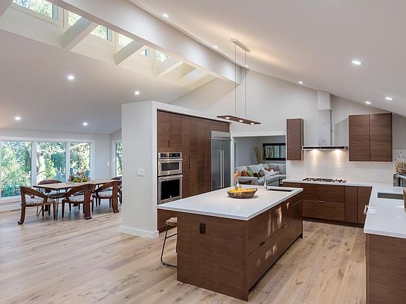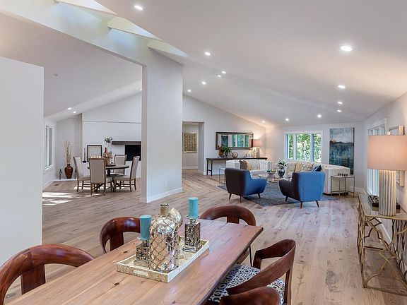 Masterfully renovated & expanded in 2017, this home was transformed w/contemporary style & an open floor plan all on one level. Main house - 4100 sq ft, pool or guest house - 381 sq ft, & 2 car garage - 440 sq ft. At the end of a cul de sac, surrounded by trees & privacy, the home is also convenient w/its proximity to Woodside, Menlo Park & Redwood City. The main house offers 2 ensuite bedrooms, the primary bedroom has nano doors leading to the backyard, 1 bedroom has a fireplace & is perfect for an office, living & dining room combination w/vaulted ceilings, dining area off the kitchen w/fireplace, chef's kitchen w/large island & counter dining, separate family room, & laundry room. The guest or pool house is perfect as a private office space for Zoom calls, rec area or bedroom, & has a full bath & kitchenette . On just over an acre, the lush grounds include: a newer deck surrounded by travertine tile, pool, new spa, firepit & raised garden beds. 2 car garage. Los Lomitas schools.
