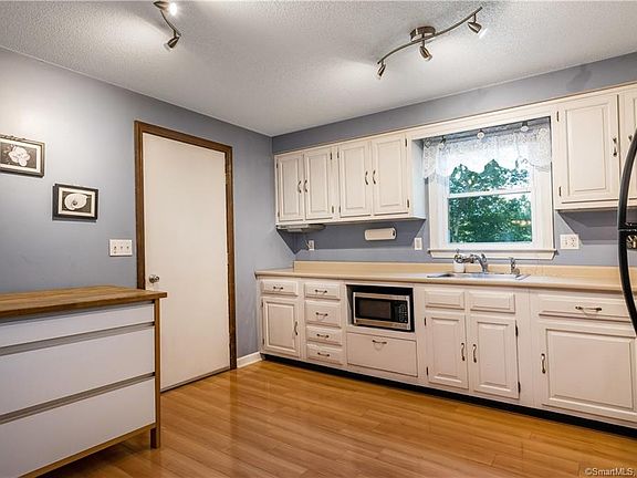 This four bedroom, two and a half bath cape sits on a half acre of land and has been meticulously maintained. There is nothing to do but unpack your boxes and start living! There are hardwood floors throughout this home. The kitchen has stainless steel appliances and opens up to the spacious dining area. The living area is great for gatherings and sitting by the fire with a view of the backyard through the french doors. There is a half bath that houses the washer and dryer as well. On the second floor, there is a master bedroom with sitting area. A remodeled bathroom off the hallway and two other bedrooms. The current owners use the bedrooms for a closet and the other for an in house office. The lower level can be used as an in-law-apartment or a rental option. The owners have performed many upgrades. This house is not a drive by.
