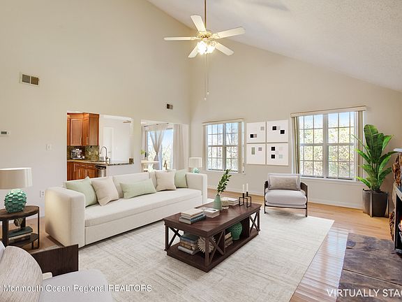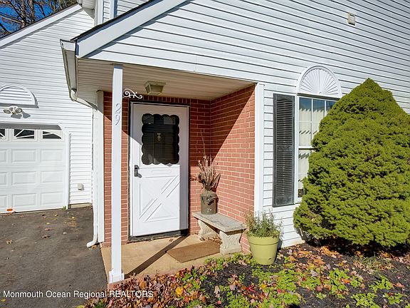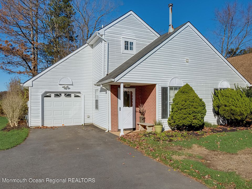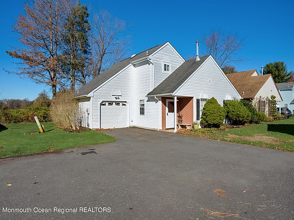 Home is located in the sought after Surrey Downs community, a 55+ community, centrally located in Monmouth County. This 2 bedroom, 2 full bathroom Jarrowtown model home boasts primary suites on both floors, walk in closets in both bedrooms. The beautifully updated kitchen features wood cabinetry to the ceiling topped with crown molding, stainless steel appliances and granite countertops and backsplash. Hardwood floors flow throughout balance of home. Living room offers vaulted ceiling & gas fireplace open to kitchen and dining room which provides access to patio. Private patio space in the backyard, backed to farmland for a seren private setting. Large one car garage and personal driveway space as well. Residents can utilize the community transportation service to run errands, go shopping or for medical care. Enjoy amenities of clubhouse, pool, tennis, shuffleboard, bocci and more. Community also offers events and trips.