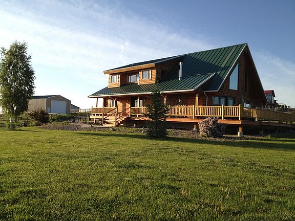 Log home with Beautiful Mountain View. Completely fenced, with a 1170 sq. ft. equipment shop. Mature raspberry garden, apple trees. Separate living suite for guest or long term family members. Best of all GOURMET KITCHEN!!!!