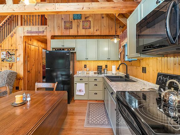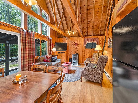 Nestled in the woods this charming East Alton home offers the perfect retreat just minutes from Lake Winnipesaukee and the picturesque town of Wolfeboro. Immaculate inside and out, this easy-care property is a true gem for those seeking a peaceful Lakes Region getaway. The house is being sold fully furnished including the garage/workshop making it move-in ready for your 3 season living needs. The interior features a 2 to 3 bedroom, 2 bath layout: the 1st floor boasts a tastefully done primary bedroom and full bath, an office that can accommodate guests if need be and an open concept living/dining/kitchen area. The 2nd floor offers a comfortable bedroom suite with a new half bath and ample closet space. The property also includes a new seasonal gazebo and a 1 car garage with shed that doubles as a workshop, perfect for hobbyists or those needing extra storage. Numerous upgrades have been added including a new drilled well, new roofing on the house and garage, additional insulation, attractive Hardie plank siding and exterior trim. These enhancements ensure the home's durability and 3 season comfort. The living area and eat-in kitchen create a warm and inviting space complemented by a pellet stove that adds a cozy ambiance and additional heat. Whether you're looking for a seasonal escape or decide to upgrade into an affordable year-round residence, this turn-key home offers a blend of comfort, convenience and rustic charm in one of New Hampshire's most sought after locations.