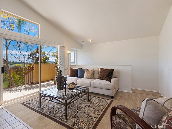 Bask in stunning sunrise & sunset skies! Private, panoramic, unobstructed hills & canyon views from your end unit in a small cul-de-sac! Peaceful & relaxing! 180 degree vista of natural & protected hills and canyon from your living room & balcony. Exquisite viewpoints from your spacious living room with a cozy fireplace opening to an abundant dining area easily accommodating a dining room table for six. Indulge in year-round ocean breezes! Newer and welcoming luxury vinyl plank and Berber carpet flooring! The upper-floor condominium includes direct access to an expansive two-car garage featuring extensive storage. Private driveway accommodates two full-size automobiles. PEX plumbing was installed two years ago. Flow-Tech water conditioner. Owner will consider an upgrade allowance. Community touts a highly responsive management team to attend to your needs. Embrace living in the upscale Encore community of Marina Hills and enjoy extensive amenities. Splash in separate and sparkling Encore and Marina Hills pools and spas. The Marina Hills pool presents swimmers with an ideal setting for laps. Team up with friends for pickleball & tennis and afterward take advantage of numerous outdoor grills within the adjacent picnicking area. Or conduct business in onsite meeting rooms staffed by onsite management personnel. An open floor plan is the centerpiece of this South Orange County dream home. The primary bedroom touts a suite with dual closets & full bathroom featuring dual sinks. Down the hallway is a sunny second bedroom/office with a view window. A hallway guest bathroom that includes a shower with a small bench for a foot rest or a sit. A second balcony off the dining area draws further light to the home. Kitchen window panoramic views imbue the ideal ambiance for any culinary experience. Room for a grill, table & chairs on the main balcony near the living room. Enjoy the natural hill & canyon views with a refreshing drink while preparing a meal! This residence is at the end of a small cul-de-sac and an end unit of the building. Very private. Very quiet. The property is an idyllic home while presenting a lucrative investment opportunity.. Close to award-winning private and public schools, bicycle and hiking trails and within minutes of Laguna Beach, Salt Creek Beach and Dana Point Harbor. Year-round ocean breezes! Several freeways are close for easy commuting. UCI and Saddleback College are also nearby.