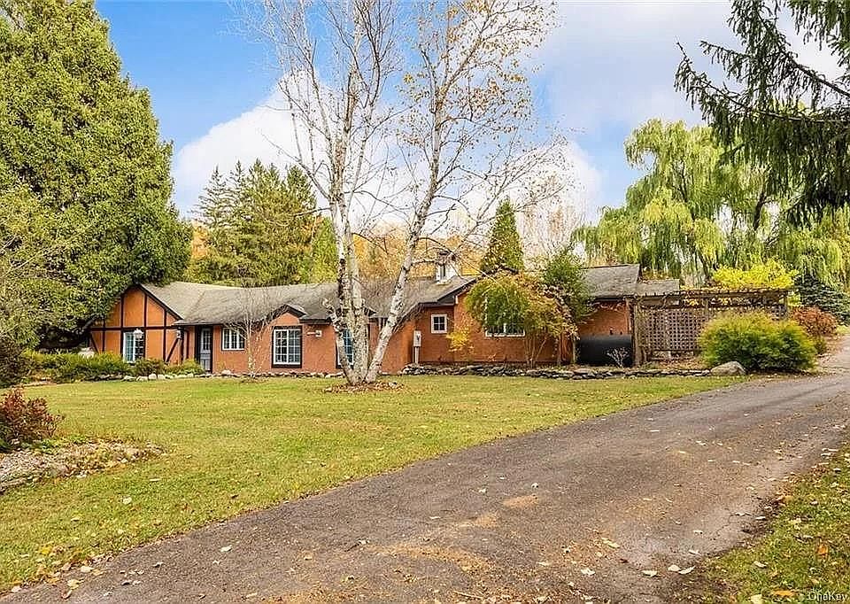 Come home to this private, French country stucco estate. Exult in the bright & airy rooms, vaulted ceilings, rustic wide plank cherry wood floors and floor-to-ceiling Marvin windows throughout w/stunning garden views. The spacious kitchen houses custom cabinetry, stainless steel appliances, huge center island w/eating bar, food pantry & lots of storage. A warm and inviting dining area w/tray ceiling & state of the art crown molding sits off the living room. Perfect for comfortable living & entertaining! The open floor plan allows the kitchen & dining area to enjoy the expansive living room with giant stone fireplace and separate pellet WBS. Built in shelves & custom smart recess lighting w/a myriad of colors. Off the living area is a master/guest suite w/kitchenette, luxe bath & door leading to pergola sitting area. Covered slate patio, renovated barn w/studio/gym/workshop. Meander through specimen gardens,10 person hot tub area, meditation pavilion Additional Information: HeatingFuel:Oil Above Ground,ParkingFeatures:4+ Car Detached,