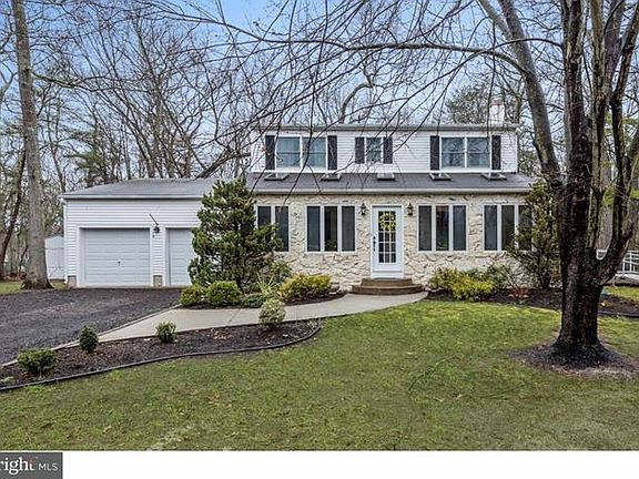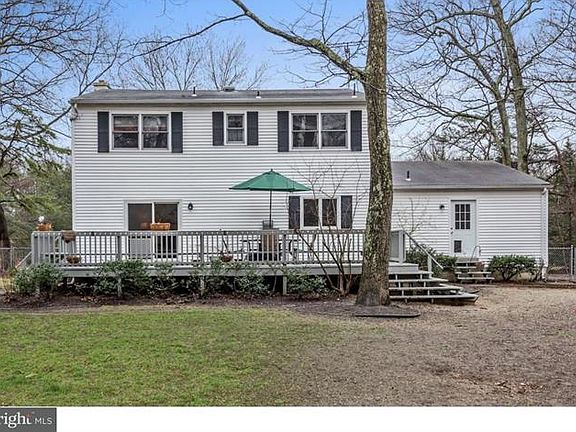 Brand new septic system being installed! Situated back on over 3 acres, this private, 4 bedroom Colonial home is nestled on a large wooded lot in beautiful Tabernacle. Enter into a lovely tiled all-season room with a cedar cathedral ceiling. The skylights and windows let in natural light; creating a spacious sitting and entertaining area for year round use. There are 2 sets of french doors that connect this space with the main house. There's an 8' sliding door at one end, allowing easy access to the outside. Continue inside and you'll find parquet hardwoods in the foyer, hallway and dining room. The living room features hardwood flooring and a wood burning fireplace. The back half of the main floor is the open concept kitchen and family room with Pergo flooring. The kitchen has been renovated with beautiful stained cabinetry, plenty of granite countertop space and tiled backsplash that is sure to please the next owners. The kitchen has stainless appliances, double sink and can accommodate a big table and also allows for additional barstool seating along the counter. Another slider provides quick access to the oversized deck and it's a skip to the fenced pool area. A mudroom with laundry and a powder room complete the main floor living. Upstairs, you'll find a large master bedroom with an updated en-suite. Plenty of closet space and large windows bringing in the natural light. 3 additional bedrooms are all of nice size, laminate flooring and offer double closet storage. There is a full basement that is currently unfinished; just waiting for you to design the space to fit your needs. The oversized 2 car attached garage keeps you dry in bad weather and offers an additional workspace area to be set up. This home's backyard area is fenced. A separate fenced area surrounds the in-ground pool. You will find a fire pit area, large entertaining deck and still plenty of space to develop as you wish. Additional storage is found in the large shed that is complete with electricity. Brand new septic system being installed. Put your spending into the fun items that personalize the home to your style and you can enjoy with friends and family.