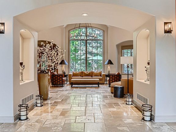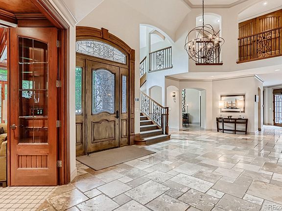 Renovated in 2016 by award winning designer Jeffrey Elliot, this Buell Mansion home offers over 10,000 sqft of unparrelleled detail and luxury. This 24/7 guard gated community includes multiple parks, a private lake with a walking path, a pool, a tennis court, a playground, and is located in the award winning Cherry Creek School District. Once inside this 7 bedroom/9bath/2 formal office home, the natural stone floors, designer lighting, and high ceilings will guide you into the grand foyer where guests can sit and converse in front of the 24’ floor to ceiling distinctive limestone fireplace; one of the six fireplaces featured in the house. Down the hall you'll find a library/formal office, a breathtaking formal dining room, and a first-floor guest bedroom retreat. The Chef’s kitchen features top of the line Thermador and Subzero appliances and sits adjacent to the open concept family room that is spacious but cozy due to the extensive natural wood details and craftsmanship. Off the back there is a covered patio with a built-in Fire Magic kitchen and outdoor TV. Drive into your own private car port from the heated/south facing driveway and you’ll find a four-car garage. The master bedroom, one of the four upstairs bedrooms, greets you with a formal sitting room featuring one of the two master suite fireplaces. The spacious master bathroom has his and hers wings with separate walk-in closets and toilets. After descending the grand spiraling staircase into the massive entertaining basement you'll find an 800 bottle eat in wine cellar with a built in humidor, a large central bar with a commercial grade beer delivery system, a private state of the art home theater with 4K video, a second formal office with French doors, two additional bedrooms/multi-purpose rooms, and a massive open concept entertaining space. You MUST see this home in person to truly understand and appreciate.