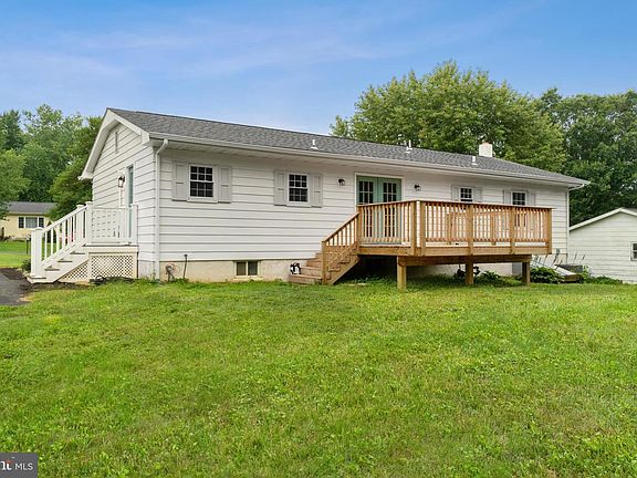 Exceptional rancher with open floor plan and large backyard . New roof & heat pump installed in 2020! Whole home has new wide plank synthetic hardwood floors. Outstanding kitchen with new granite counters and brand new stainless steel appliances. Master bedroom has walk in closet & master bath includes: stall shower with ceramic tile surround and beautiful tile floor. New trim, doors, recessed lighting and professionally painted inside & out. 16'x12' deck . New septic tank just installed & approved by county. Large unfinished basement with walkout stairs. Great backyard and tranquil setting. Turn key home sure to please. Pristine!!!