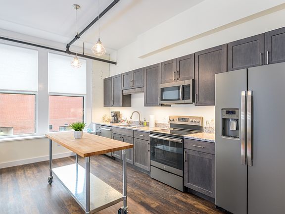 Charming one bedroom unit in a newly renovated historic downtown Bangor Building. Open concept with large windows, granite counter tops, butcher block island, stainless appliances, in unit washer/dryer, air conditioning, elevator, one off street parking space, and secure tenant storage. An application via Zillow/Trulia must be received prior to scheduling a showing of this property. One year lease. Renter is responsible for electricity and cable/internet if desired. Landlord pays for base heat and water/sewer. One parking space in Pickering Square Parking garage is included in the rent. Non-smoking/vaping building.