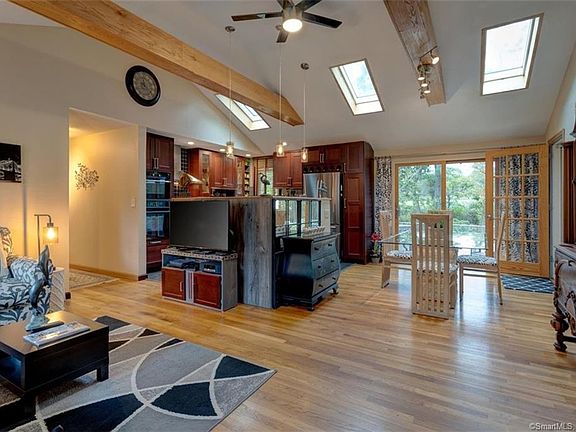 Packed with a Punch.. You will fall in love when you walk in to this warm, open totally renovated Ranch home. Every attention to detail was considered including a Wood stove with a beautiful stone wall behind it which will make you toasty warm. Three skylights in Great room make for a cherry and bright space. Kitchen was thoughtfully designed with granite counters, new cabinets, engineered vinyl floor, plenty of cabinets and storage space. Hardwood floors through-out the 3 bedrooms. The newly renovated bath has a stunning tiled shower and skylight. You will be spending plenty of time in the 3-season sunroom which leads to trek decking with built-in bench, fenced area for your dog and wooded back yard. Every inch of this home is usable space, including the finished lower level with electric fireplace in the wall, laundry room, storage space, and workshop. The attached garage, hardwired for generator hook-up, professional landscaped yard makes all on a quiet dead-end street. Enjoy all Middlefield has to offer, Powder Ridge ski resort, Lyman Orchards and 3 Golf courses in the area. Make your appointment today!