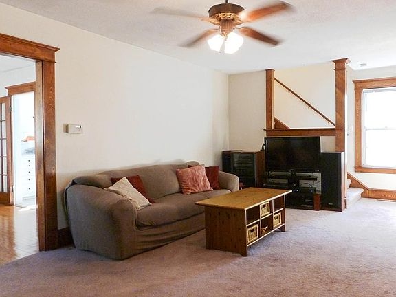 Charming home conveniently located on a quiet street in the center of town. Vinyl siding, replacement windows, gas heat, gas hot water & low taxes means minimal costs to own this home. Large and inviting living room (hardwood under the carpet) with gas fireplace opens to the bright and spacious dining room w/ hardwood flooring. The enclosed front porch is a perfect spot for your morning coffee. 2 good size bedrooms on the 2nd floor, both with hardwood flooring and both with walk in closets. Newer over sized garage, fully insulated with heat and new floor. Flat back yard with nice landscaping, newer paved driveway +/- 3 yrs ago, Minutes to the highway, shopping and plenty of shopping and dining. Move right in!