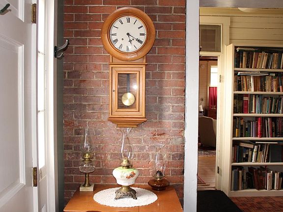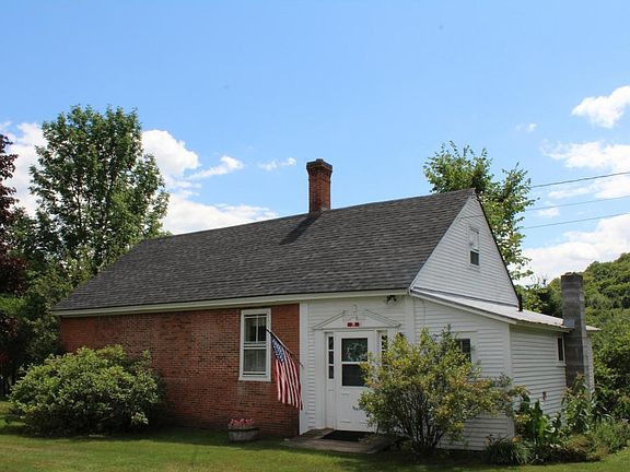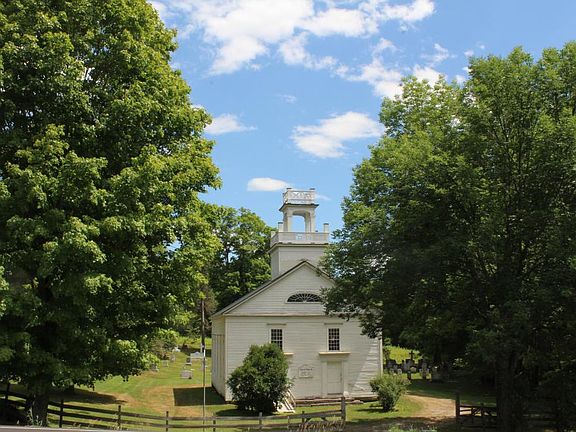 Old Church School, circa 1827, is one of the landmarks of Bethel Gilead with brick exterior, antique wood floors, hand hewn beams, classic built-in cabinets, Vermont Castings wood stove, and new architectural shingle roof. The slate floor entry leads to the library, open living/dining room area (former classroom), galley kitchen, three-quarter bath, and laundry room. An original school desk greets you at the top of the staircase outside the large master bedroom. The location is outstanding, on a corner lot with 5.7 acres, paved road, brook, and view of historic Old Christ Church. Enjoy the changing seasons with quiet walks along Gilead Brook Road, cross country ski, or hike the backwoods in this charming hamlet.