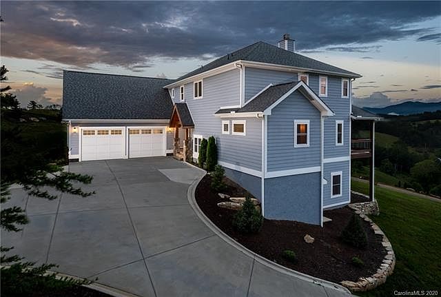 Long-range mountain views just 15 minutes from downtown Asheville! The front door opens and welcomes you into a breathtaking living room featuring a beam-lined cathedral ceiling and stone fireplace. The gourmet kitchen features an oversized island with a beautiful butcher block countertop and prep sink, DCS gas cooktop, stainless appliances, farm sink, granite countertops, walk-in pantry, and more. An oversized master suite on main includes private access to the covered back porch. The master bath features double vanities, a soaking tub, walk-in tile shower, and spacious walk-in closet. The upper level features two large bedrooms, two full baths, a home office, flex room, and family room above the garage. The basement level includes a full guest suite and storage room. Outdoor living space is abundant with both covered and open-air deck space to enjoy the views. MATTERPORT 3D TOUR AVAILABLE FOR DIGITAL SHOWINGS