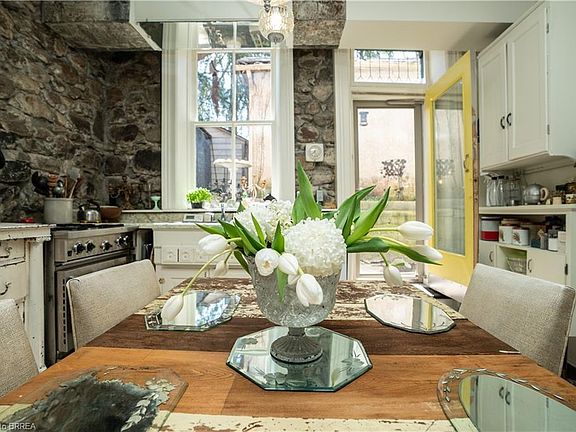 A bohemian home with a view of downtown Paris. Welcome to 29 Grand River Street South, a beautiful artisan home in Paris Prettiest town in Canada. Whether you are inside or in the quaint backyard you will feel like you just stepped into a beautiful Toronto loft home. One magazine began it's feature on this home with "A 19th Century Row-house Goes Rogue With Freewheeling Style". The magazine, Country Sampler Boho, hit the nail on the head with the description of this home. Every square inch of this home has been painstakingly attended to in an Artisan Bohemian style. This property exudes Character & Charm and is unlike any other. Exposed stone walls, unique architecture and a haven for your antiques. Get back to nature with a secret garden including a keyhole garden, clothesline, stone walls and storage space. You will love relaxing and entertaining in the covered patio sitting high above the river and downtown core. Grab your bag and head downtown to the quaint shops and restaurants, or stroll by the river - everything you need is at your doorstep! Also a great location for commuters, only minutes to highway 403. Please note this unit has street parking only