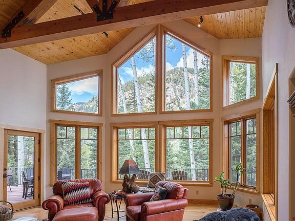 Located directly across the street from Purgatory Resort, this stunning resort home offers an unparalleled blend of luxury and convenience. Enjoy breathtaking views of the Hermosa Cliffs and Engineer Mountain from this spacious residence. The main level is designed for comfortable living, featuring a master suite with a steam shower, large jacuzzi tub, and spacious walk-in closet with direct access to the outdoor deck. The great room impresses with high vaulted tongue and groove ceilings and exposed beams, creating an inviting atmosphere for relaxation and entertaining. Culinary enthusiasts will appreciate the gourmet kitchen, equipped with new top-of-the-line appliances and ample counter space, while the adjacent large dining area is perfect for family gatherings. The main level also includes a versatile 4th bedroom/office and a conveniently located laundry room. Upstairs, two well-appointed guest bedrooms share a large bathroom, and a huge loft area offers the perfect media or game room space. Outside, the expansive deck is surrounded by a mature grove of Aspen trees, providing a serene setting for outdoor enjoyment. The oversized two-car garage includes ample storage space for all your gear. This home is being sold fully furnished and has been PRE-INSPECTED for your peace of mind. As a bonus, DMMA membership includes access to a pool and hot tub, fitness center and spa, private owners lounge, kids game room, tennis courts, and a free door-to-slope ski shuttle during the ski season. This property perfectly blends luxury, comfort, and convenience, making it an ideal mountain retreat.