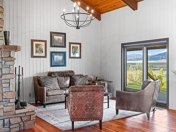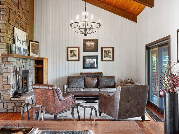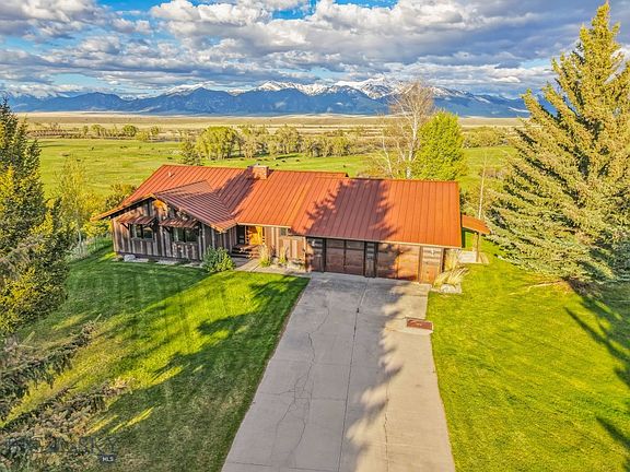 With the best views in the Madison Valley, deeded access to Blaine Spring Creek and only minutes to the renowned Madison River...this property will knock your socks off! The property sits on 1.37 acres with mature trees, a 2,025 square-foot modern cabin w/ an open floor plan and endless views! Property features include: a fully renovated kitchen, open concept living, dining and large den with three bedrooms, two bathrooms, vaulted ceilings, full laundry room, 2 car garage, covered back porch and a massive stone fireplace that adds warmth and character. The overall design strikes a nice balance between modern conveniences and a relaxed, rustic feel.