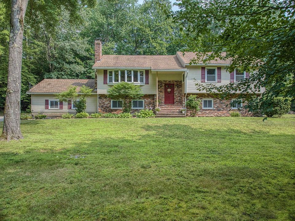 Showings begin Fri 8/04 on this beautifully maintained home offers a 1st floor primary suite with walk-in closet & updated 3/4 bath, 2 other bedrooms with updated full bath, family room with wood burning fireplace with brick hearth, large eat-in kitchen with granite counters, a 1st floor laundry room, hardwood floors throughout & access to the rear deck. The sun-filled walk-out lower level offers 2 other spacious bedrooms with one currently being used as an office, a 1/2 bath, bonus room with wood burning fireplace with insert, new plush wall to wall carpet, and access to the 2-car attached garage, as well access through the rear slider to the covered hot tub and above ground pool with spacious pool deck. The large corner lot offers loads of room for back yard gatherings. Central a/c. Chimney just cleaned and in good condition. 1250 gallon stone & pipe septic just pumped & inspected - rated in good condition. Property located in desirable Merrimack neighborhood minutes to area schools, shopping, restaurants, major commuting routes and airports.