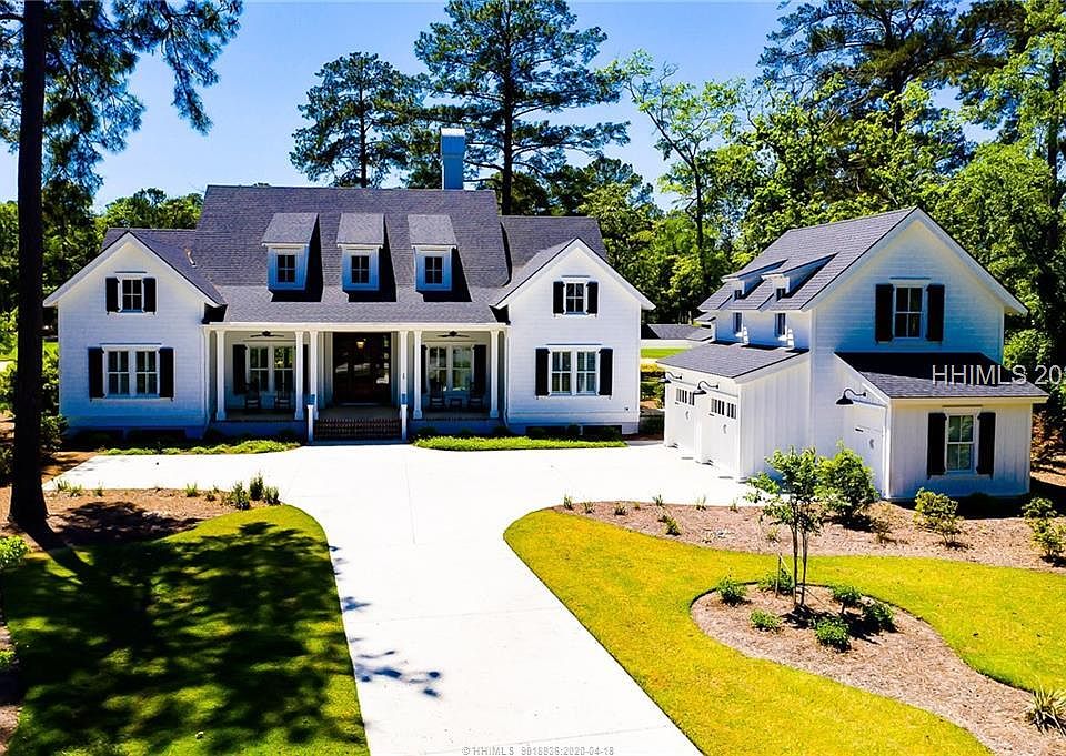 One of Oldfield's few one story homes displaying traditional design and quality construction. This almost new home (completed 2018) with 4 bdrm/4.5 baths is located on private cul de sac with outstanding 8th fairway view; featuring open floorplan with spacious great room, gourmet kitchen, breakfast & dining area; upgraded fixtures, appliances & finishes (incl ever popular shiplap walls); wide plank hickory wood flooring throughout, abundance of natural light, master bedroom with his/her closets, all bedrooms ensuite , 11' coffered ceilings, 8' doors with transom. Screened porch, finished room over garage & Walk in attic for future expansion.