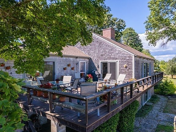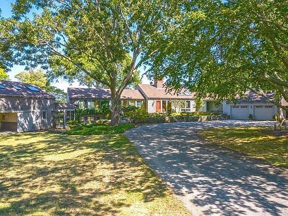 Birchfield Farm - Rambling Royal Barry Wills designed mid-century home is set on over three park-like acres in one of South Dartmouth's most desirable neighborhoods. The heart of the home is an expansive great room with cathedral ceilings, fireplace, dining area and sliders to the deck overlooking the rolling lawns with views of Padanaram Harbor and Buzzard's Bay. The vintage kitchen is flooded with natural light and adjacent to dining/living area. Skylit master bedroom with en suite bath and sliders to the deck, spacious guest bedroom with full bath...The finished lower level features a fireplaced family room opening to rear yard, two guest/children's bedrooms, and another bath. Over one of the garages is a charming studio apartment with bedroom, bath, and efficiency kitchen. Two-bay attached garage, greenhouse, gardens...association beach, dock are but a minute's stroll. Perfectly located just outside of quaint Padanaram Village with its shops, restaurants, market, and yacht club!