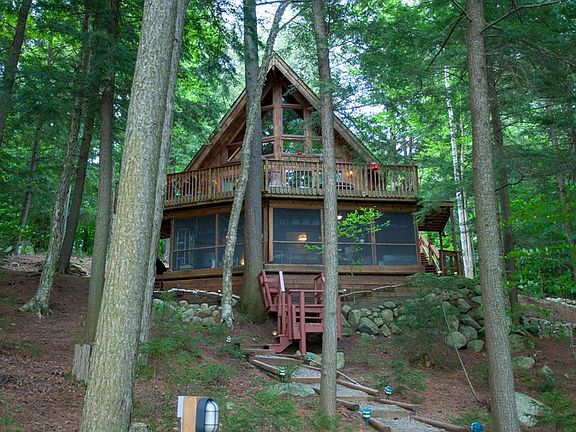Gull Pond is a private glacial 1-mile lake with clear deep water, super trout fishing, and tranquility. The number of lots/homes is fixed, guaranteeing privacy. No doubt this 18 acre site with 508 feet of waterfront will please the person who wants to live a community without close neighbors. The lake by virtue of deed restrictions is protected and mostly motorless. This substantially built cedar home has vaulted ceilings with large exposed wood beams, two fireplaces and four bedrooms and two baths. Large deck, overlooks the waterfront and special setting. High Speed Internet